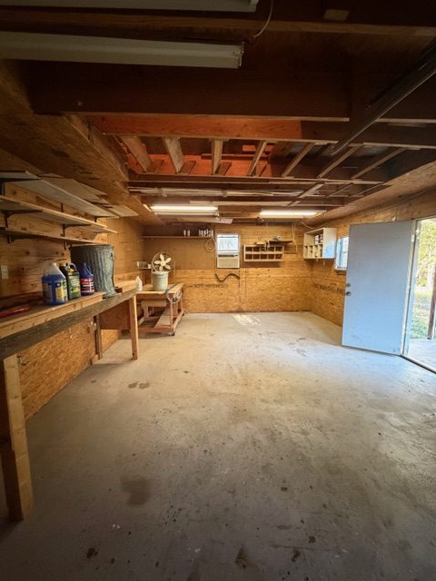 Outside, there is covered parking for two vehicles, plus additional concrete parking ideal for a boat, trailer, or jet skis. A two-story insulated workshop with bay door, window unit, and 110v electrical service adds exceptional convenience and functionality.
